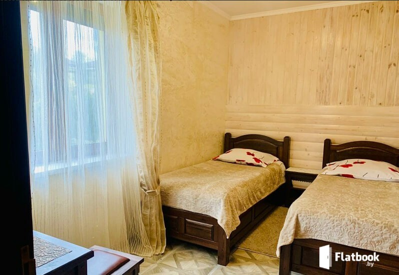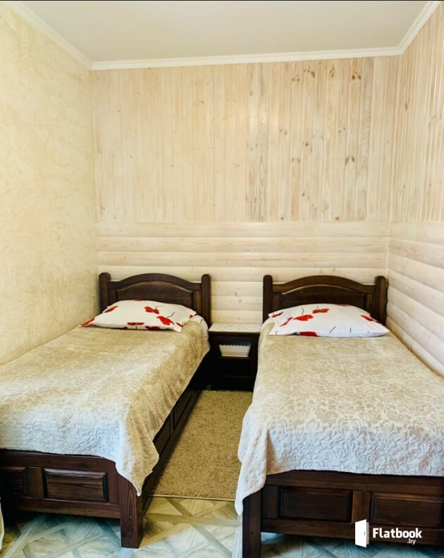 Коттедж «Молодежный» до 4 Гостей. 2-х местная спальня, гостиная с раскладным диваном. Крытая беседка. Большая лужайка с зонтом и шезлонгами. Профессиональное караоке бонусом. Большая смотровая площадка на озеро с садовой мебелью. Все коттеджи оснащены кухнями со всем необходимым, 2 туалетами, душем, авторской дубовой мебелью, кроватями с ортопедическими матрасами, кондиционерами, ТВ Три-колор. Имеется прачечная. Для каждого коттеджа своя парковка под видеонаблюдением. Предлагаем питание, банкетное меню. Озеро с ухоженным пляжем и удобным входом в воду 20 метров от усадьбы. Лодка, каяки, сабы, сауна, купель. Возможна аренда катера. На территории в свободном доступе теннисный стол, баскетбольное кольцо, качели, шезлонги, беседки, зоны барбекью с мангалами. Рядом развитая инфраструктура - сетевые магазины Евроопт, аптеки, салоны мобильной связи, банки, курортный поселок Нарочь с прогулочной набережной с кафе, ресторанами, ночным клубом. Имеется туристическая программа по местным достопримечательностям, организованная Национальным парком, а также возможность получения амбулаторного лечения в близлежащих санаториях. Мы обеспечим для Вас достойный отдых в доброжелательной, комфортной, безопасной атмосфере!